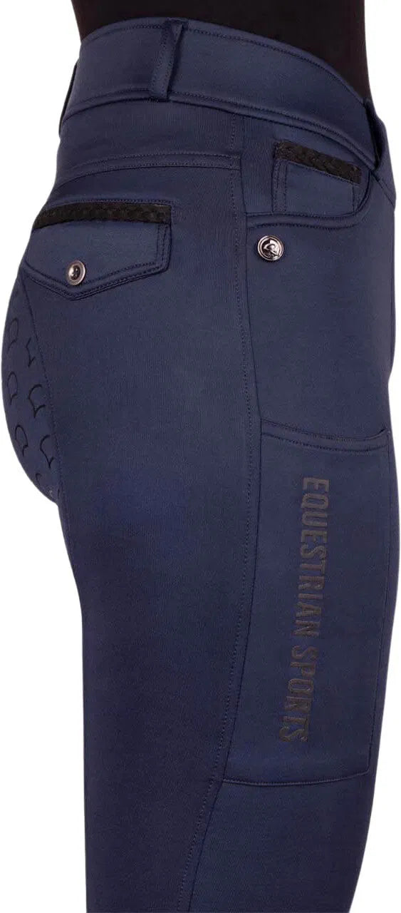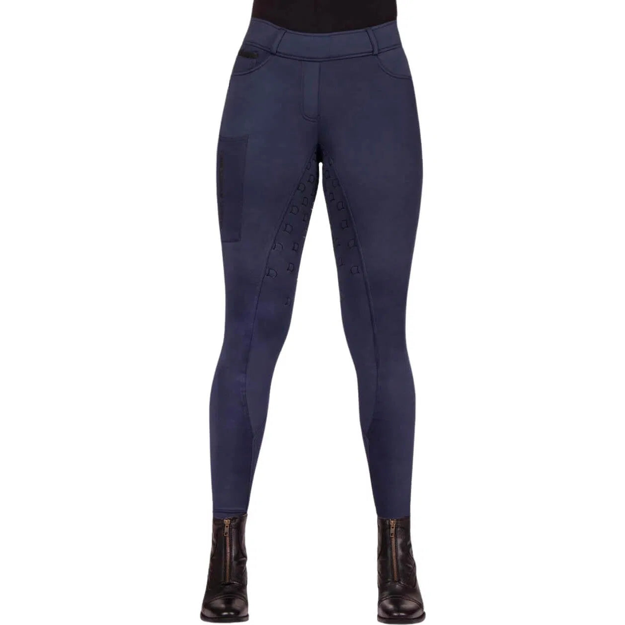 Sötétkék színű, teliszilikonos lovaglóleggings.
