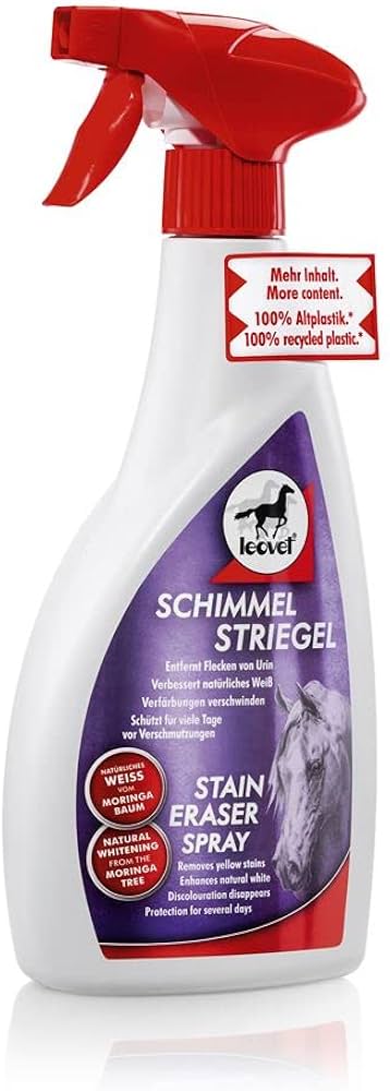 Közvetlenül az olyan makacs foltokra, mint a vizelet, trágya, fű stb. permetezve a Milton Schimmel Striegel segít könnyedén eltávolítani a koszt a szőrről.