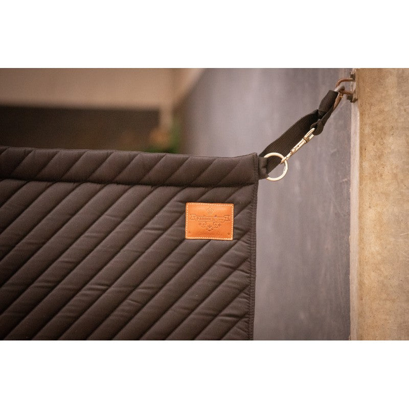 Karámajtó, amely a lovat az istállóban tartja, miközben több fényt és láthatóságot biztosít mind versenyeken, mind az istállóban. Ez a fajta felszerelés kiváló kommunikációs eszköz lovasbemutatókon is, mivel lehetővé teszi a partnerek és szponzorok nevének/logójának hímzését. A karámajtó nagyon ellenálló tépőzáras rendszerrel van rögzítve, akárcsak a ponyva, amelyből készült, különösen robusztus és úgy lett kialakítva, hogy megvédje a változó időjárási viszonyoktól. Összetétel: 100% poliészter. Egy méretben kapható.