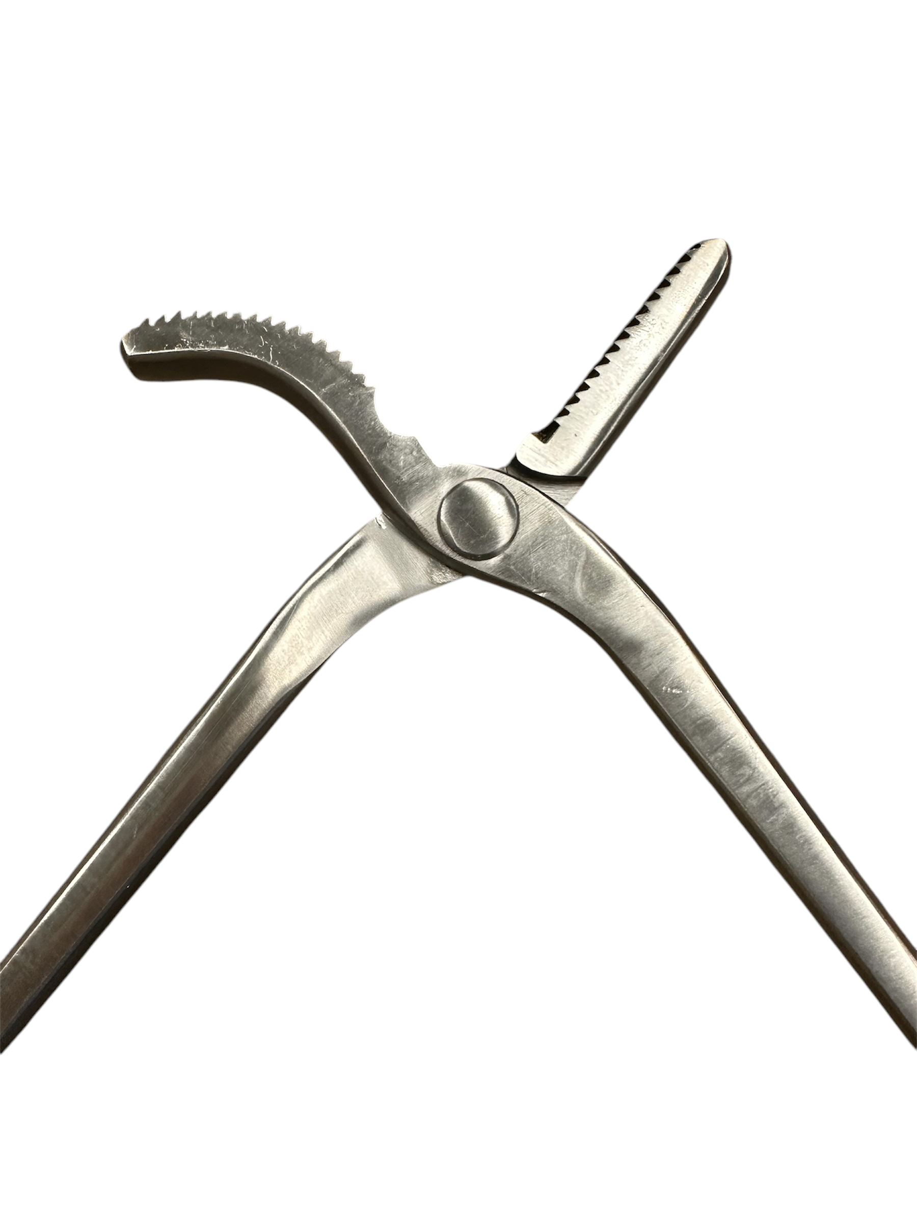 Rozsdamentes acélból készült szögmeghajlító "krokodil" fogó.