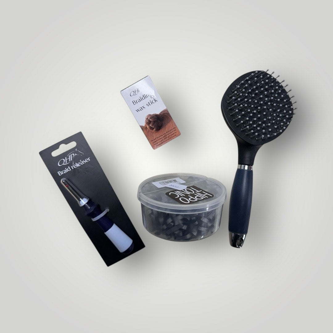 Egy tökéletes fogású sörénykefével, szilikon anyagú 500 darabos sörénygumival, összetartó waxxal és egy kibontó tűvel.