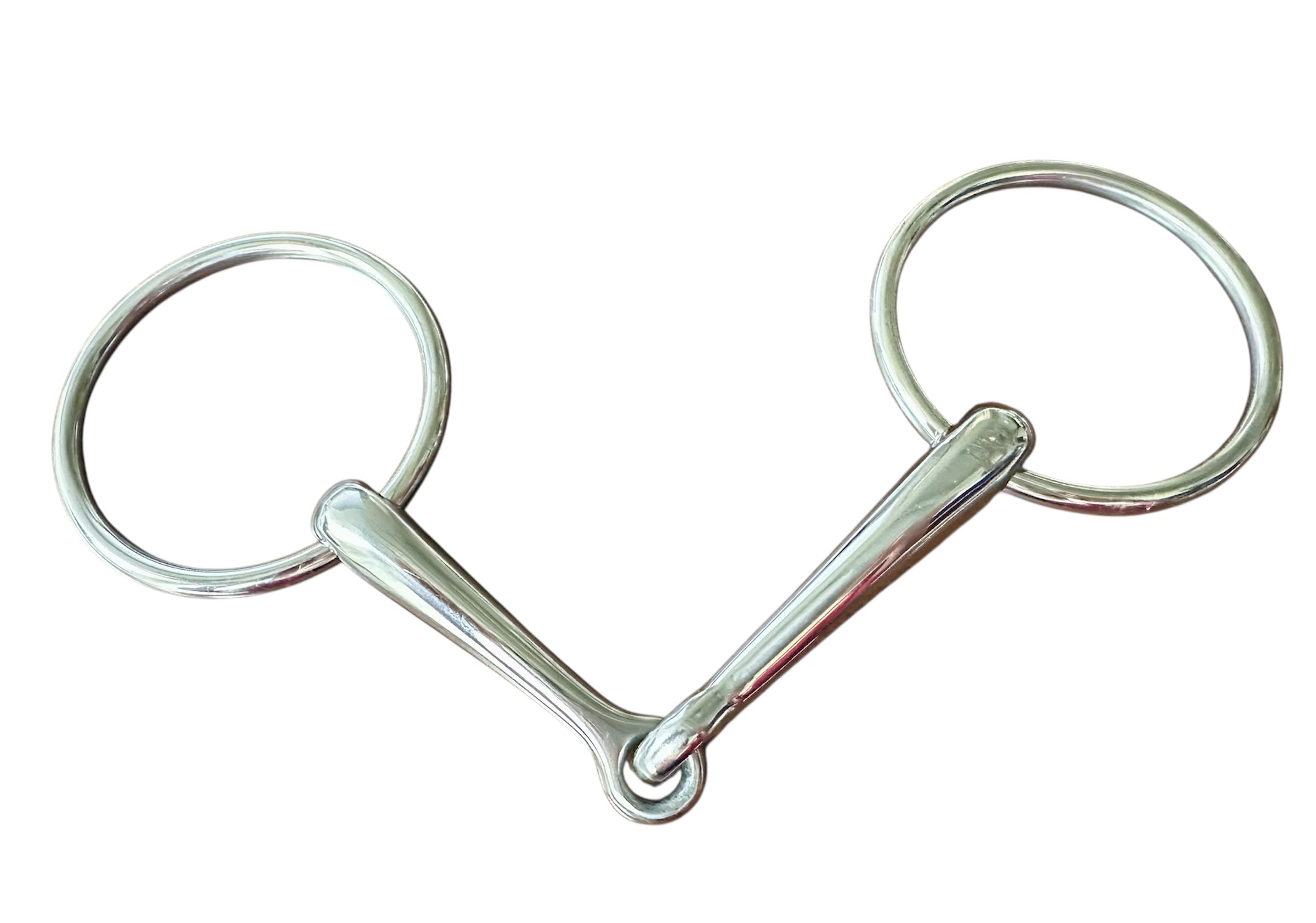 Rozsdamentes acélból készült vékony szájrészű ( 14mm ) egyszer tört zabla.