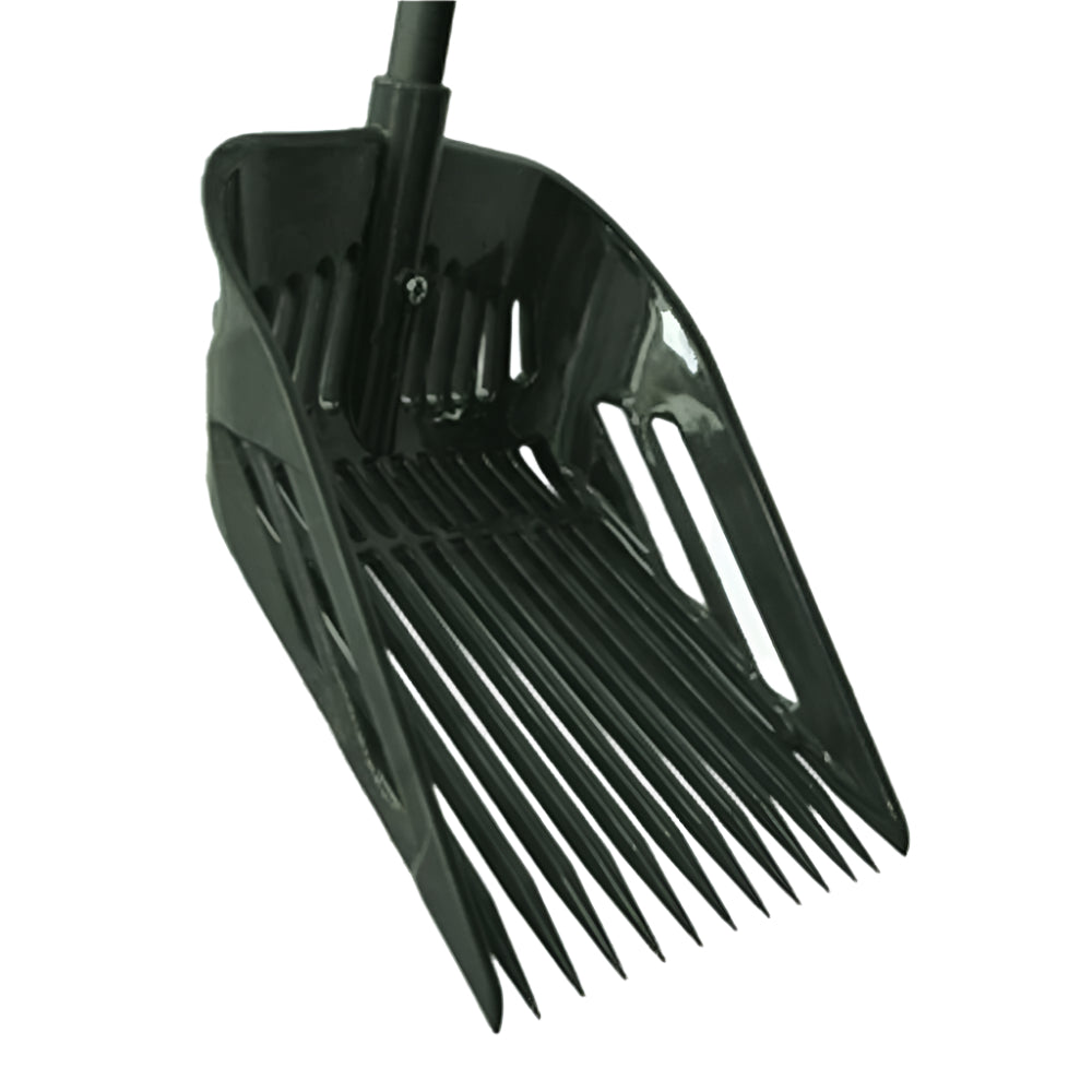 Fém nyelű műanyag trágyázóvilla műanyag markolattal. A villa 33 x 37cm, a nyél hossza 110cm.