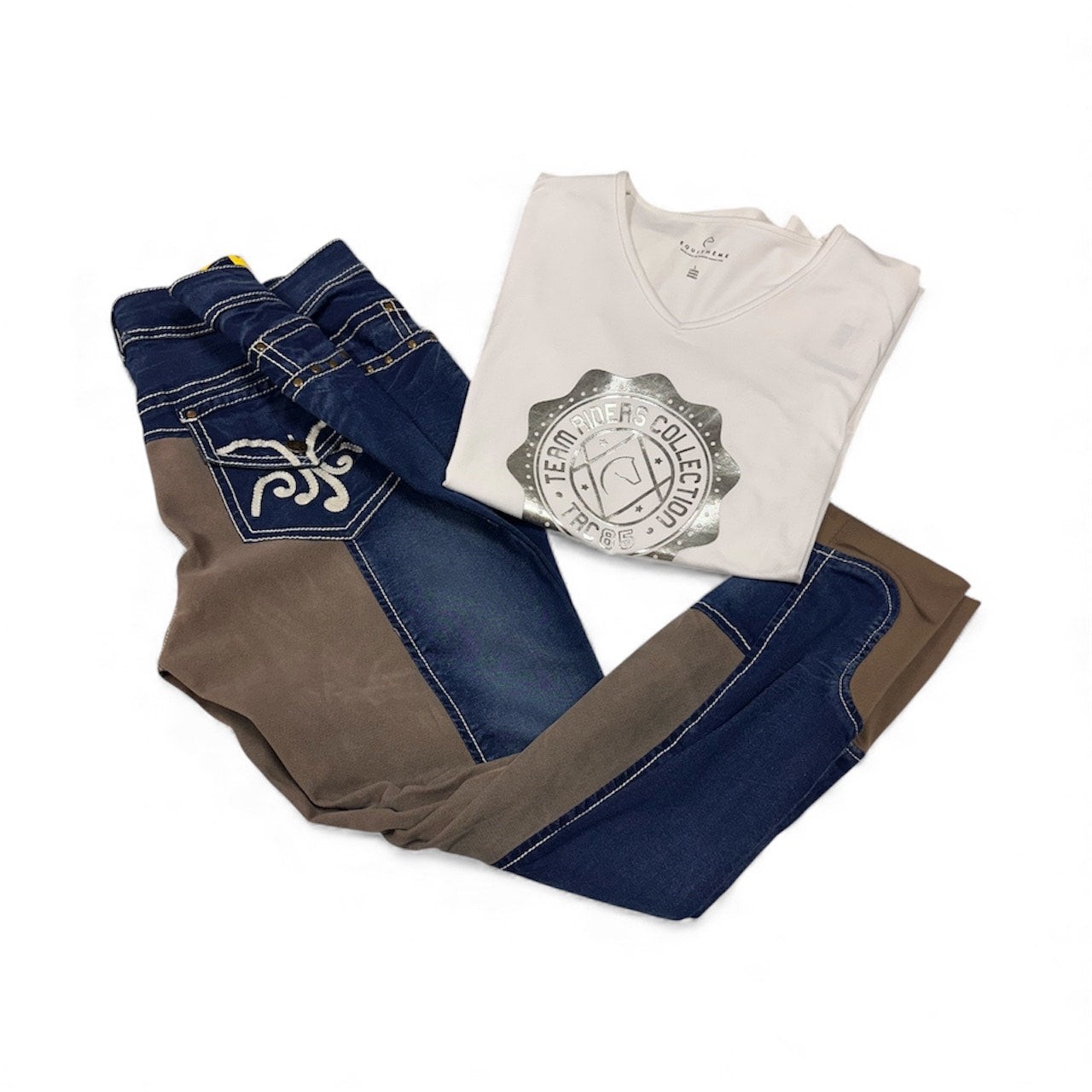 HKM bőrfenekes farmer lovaglónadrág Equi-theme női T-shirttel